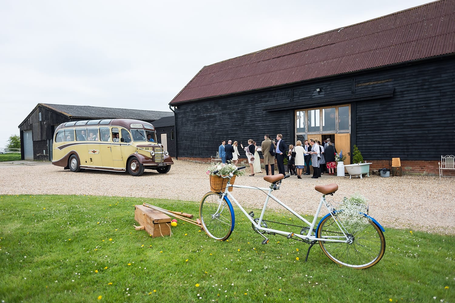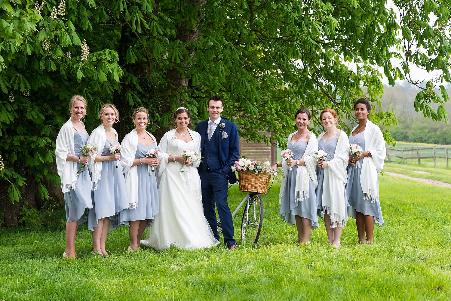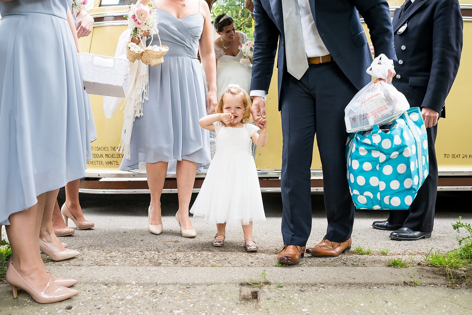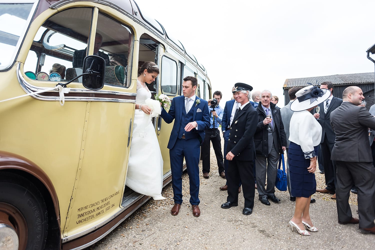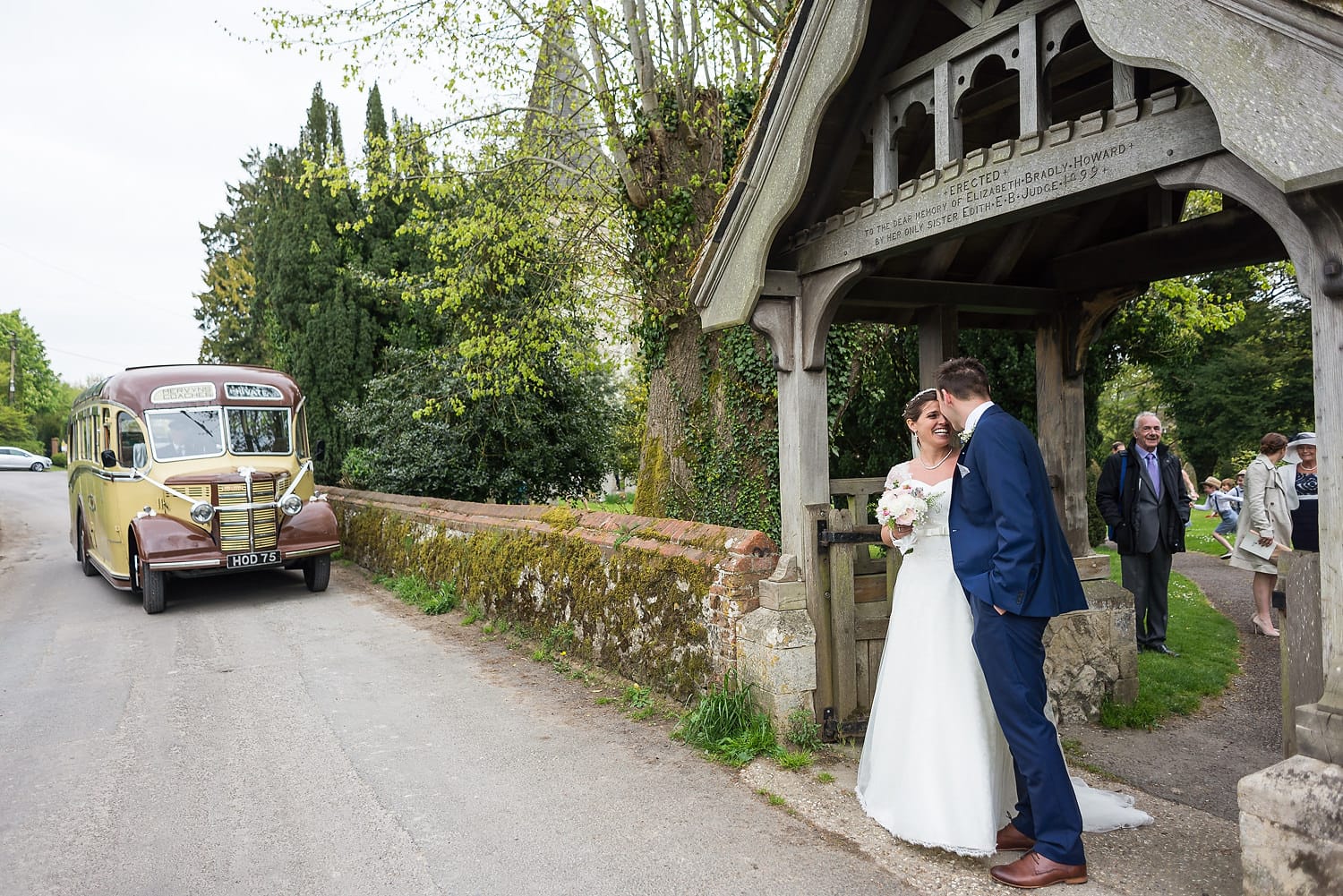 This was my first time photographing a Bonhams Barn wedding. This Hampshire wedding venue is situated in the village of Holybourne, which is just outside Alton. The day began with the wedding party getting ready at Watercress Lodges in Ropley. I loved this location next door to Ropley train station, and a place where you can even jump on the historical Watercress Line. When everyone was ready, they jumped onto the fun bus provided by Mervyns Coaches for the wedding ceremony at the Church of Holy Rood in Holybourne. Villages do not get more picturesque than this! After the ceremony, the bridal party jumped back onto the bus, and we headed to the barn for the wedding reception. The guests were wowed by the rolling hills and beautiful Hampshire landscape that surrounds this oak-framed barn.