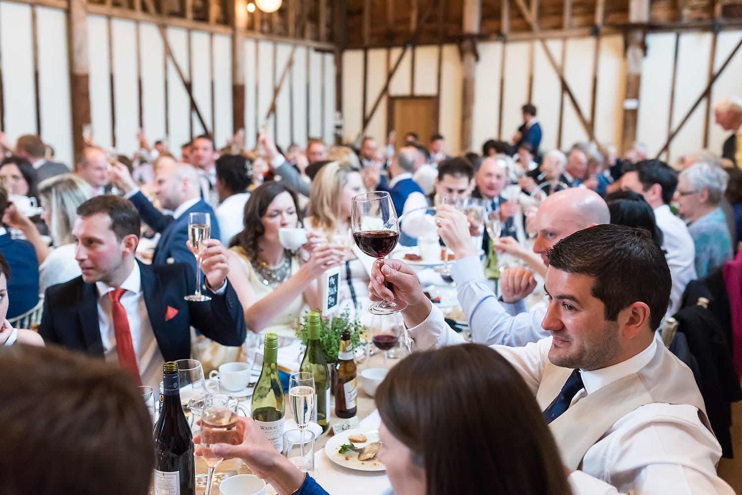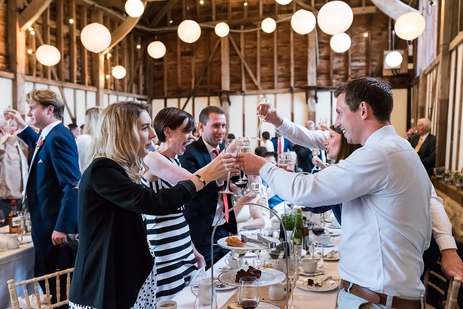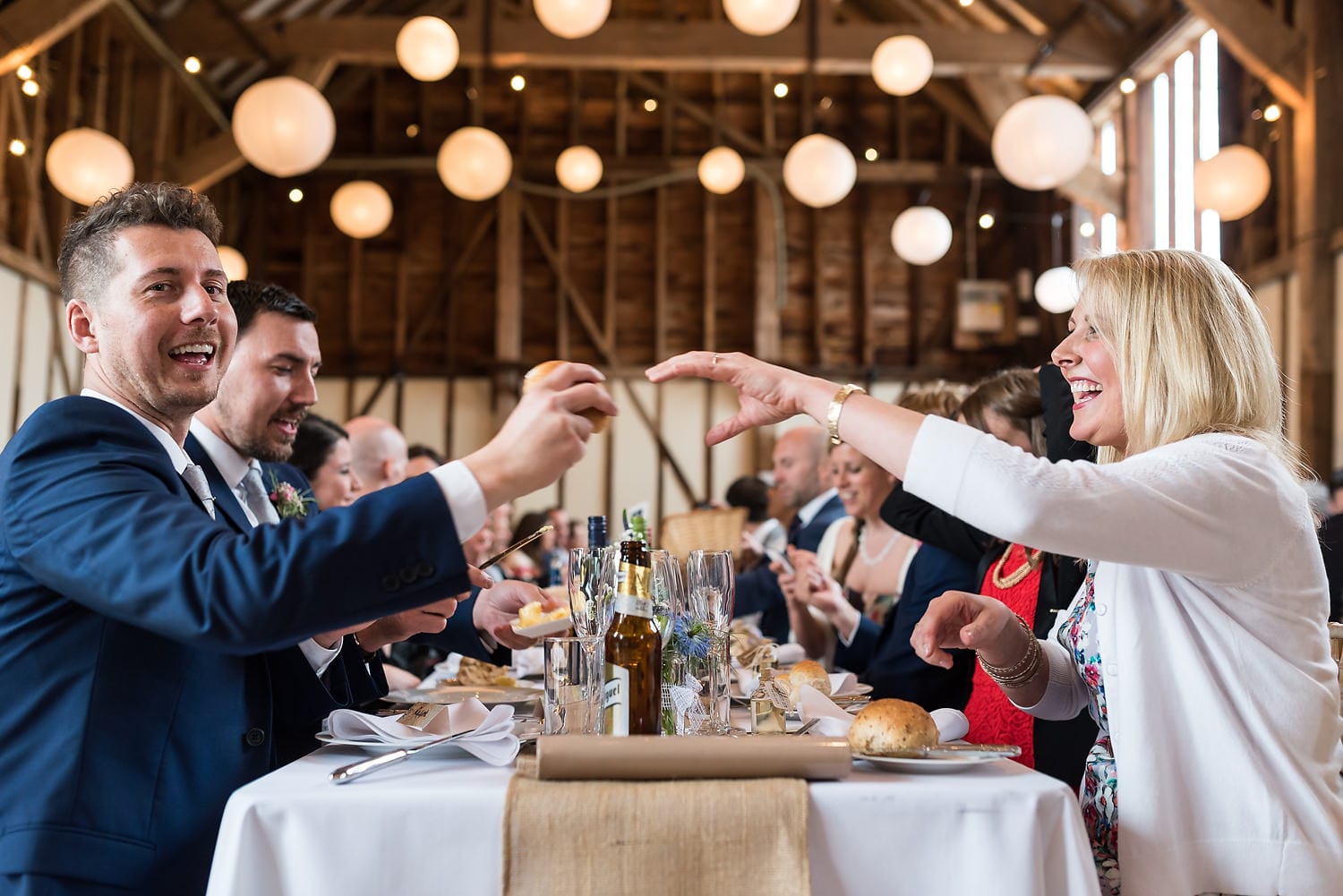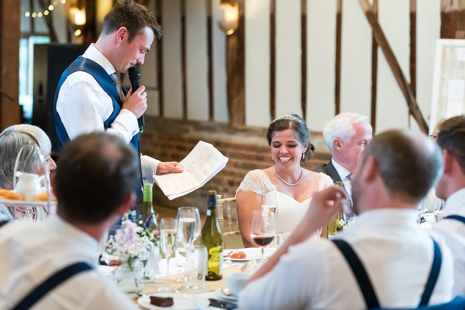 This was my first time photographing a Bonhams Barn wedding. This Hampshire wedding venue is situated in the village of Holybourne, which is just outside Alton. The day began with the wedding party getting ready at Watercress Lodges in Ropley. I loved this location next door to Ropley train station, and a place where you can even jump on the historical Watercress Line. When everyone was ready, they jumped onto the fun bus provided by Mervyns Coaches for the wedding ceremony at the Church of Holy Rood in Holybourne. Villages do not get more picturesque than this! After the ceremony, the bridal party jumped back onto the bus, and we headed to the barn for the wedding reception. The guests were wowed by the rolling hills and beautiful Hampshire landscape that surrounds this oak-framed barn.