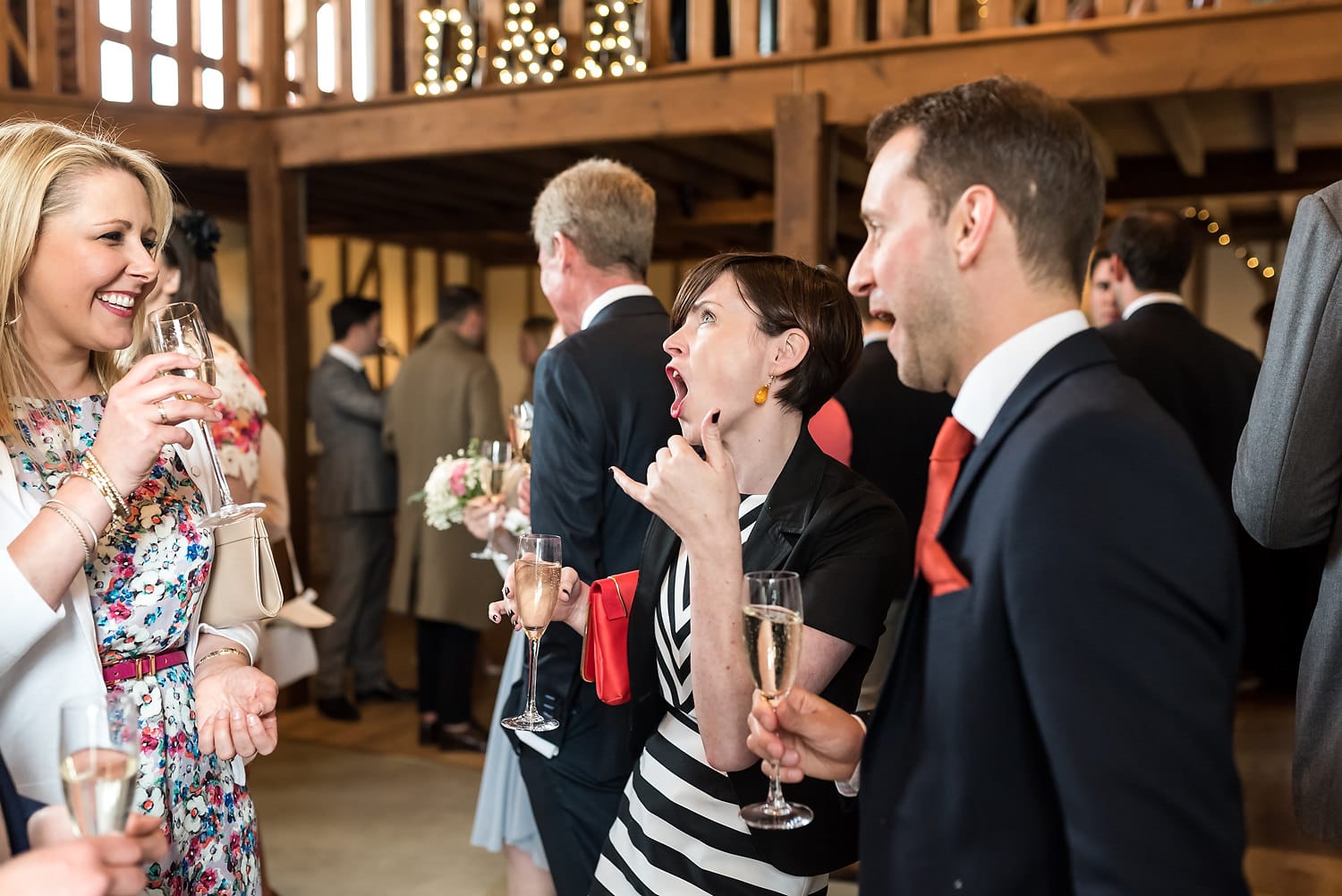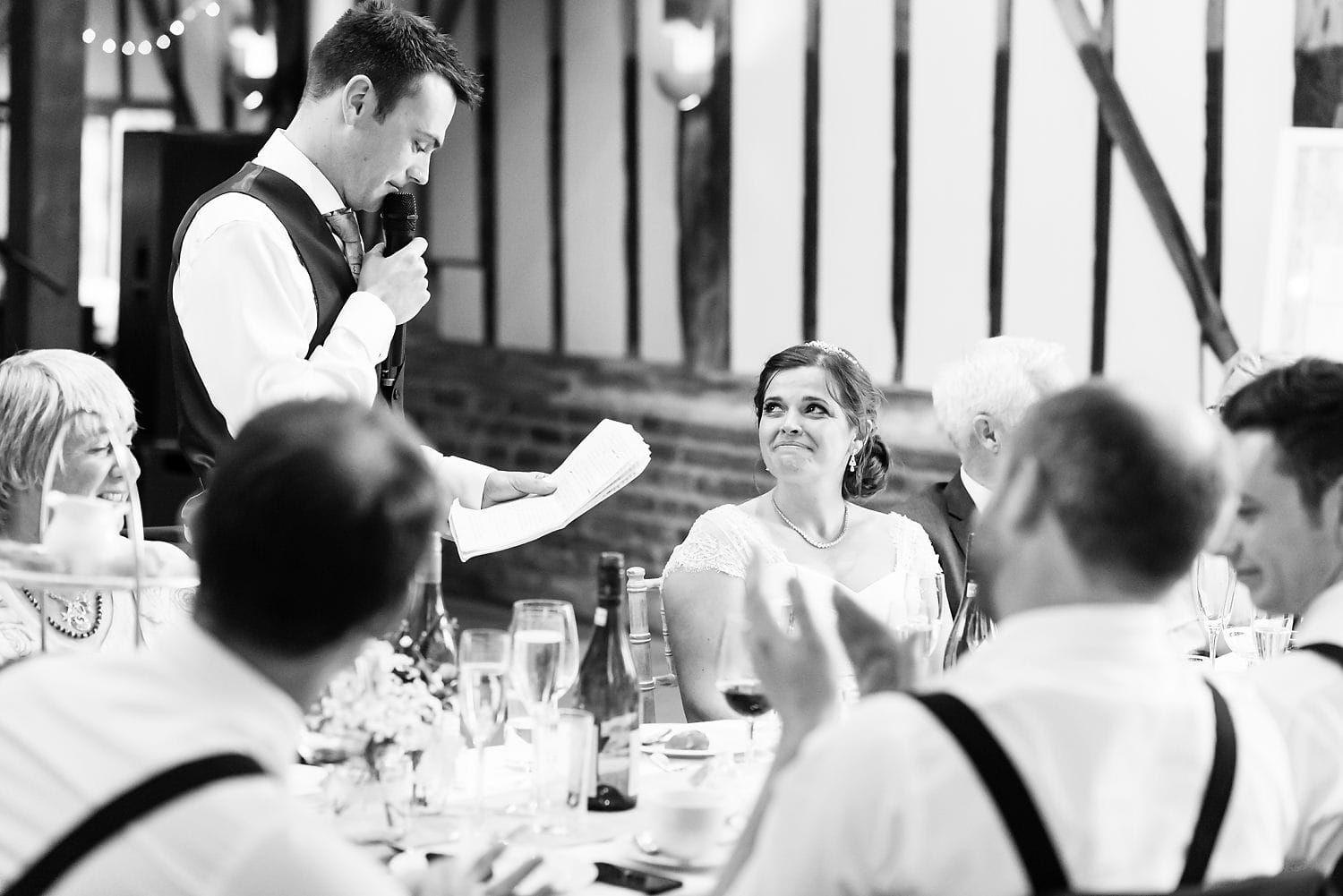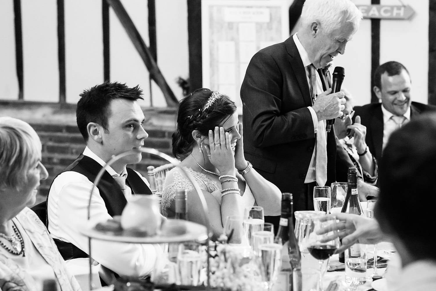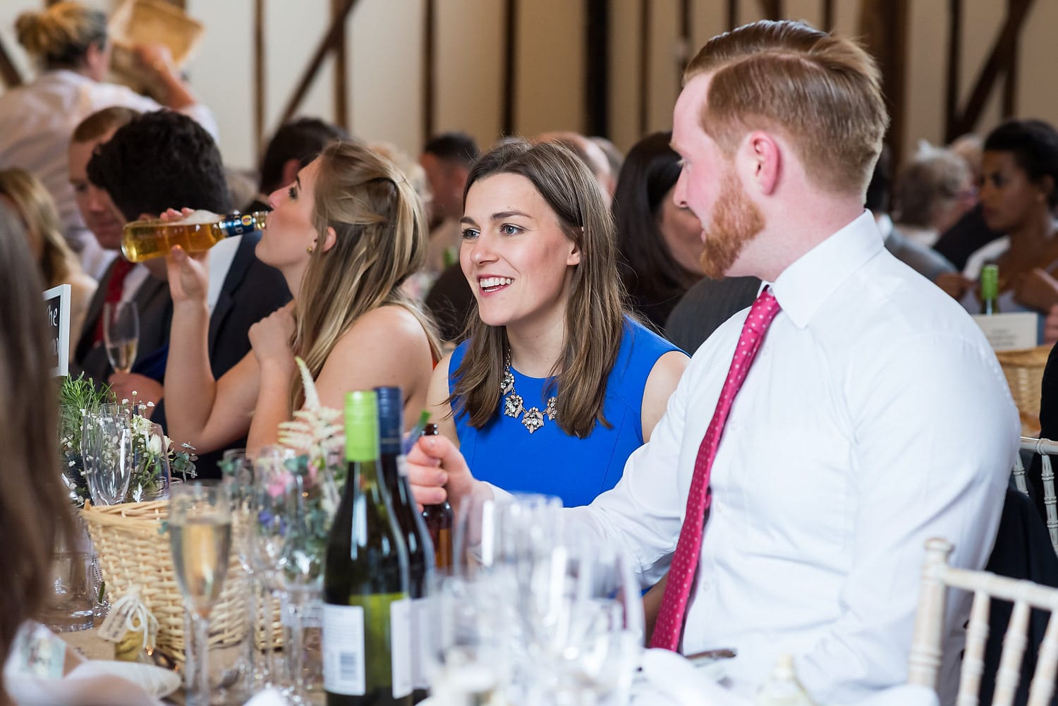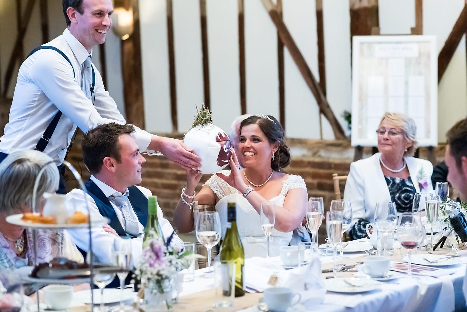 This was my first time photographing a Bonhams Barn wedding. This Hampshire wedding venue is situated in the village of Holybourne, which is just outside Alton. The day began with the wedding party getting ready at Watercress Lodges in Ropley. I loved this location next door to Ropley train station, and a place where you can even jump on the historical Watercress Line. When everyone was ready, they jumped onto the fun bus provided by Mervyns Coaches for the wedding ceremony at the Church of Holy Rood in Holybourne. Villages do not get more picturesque than this! After the ceremony, the bridal party jumped back onto the bus, and we headed to the barn for the wedding reception. The guests were wowed by the rolling hills and beautiful Hampshire landscape that surrounds this oak-framed barn.