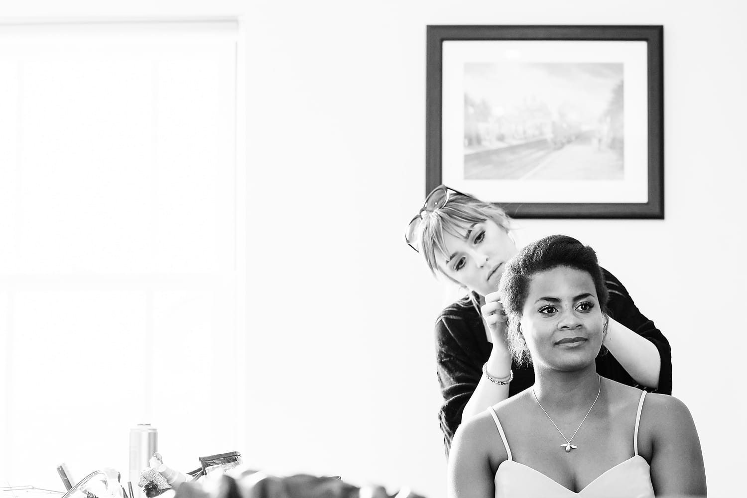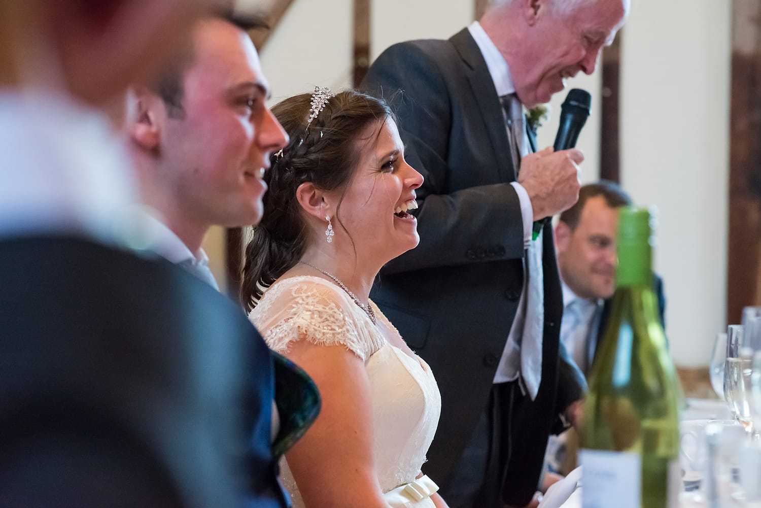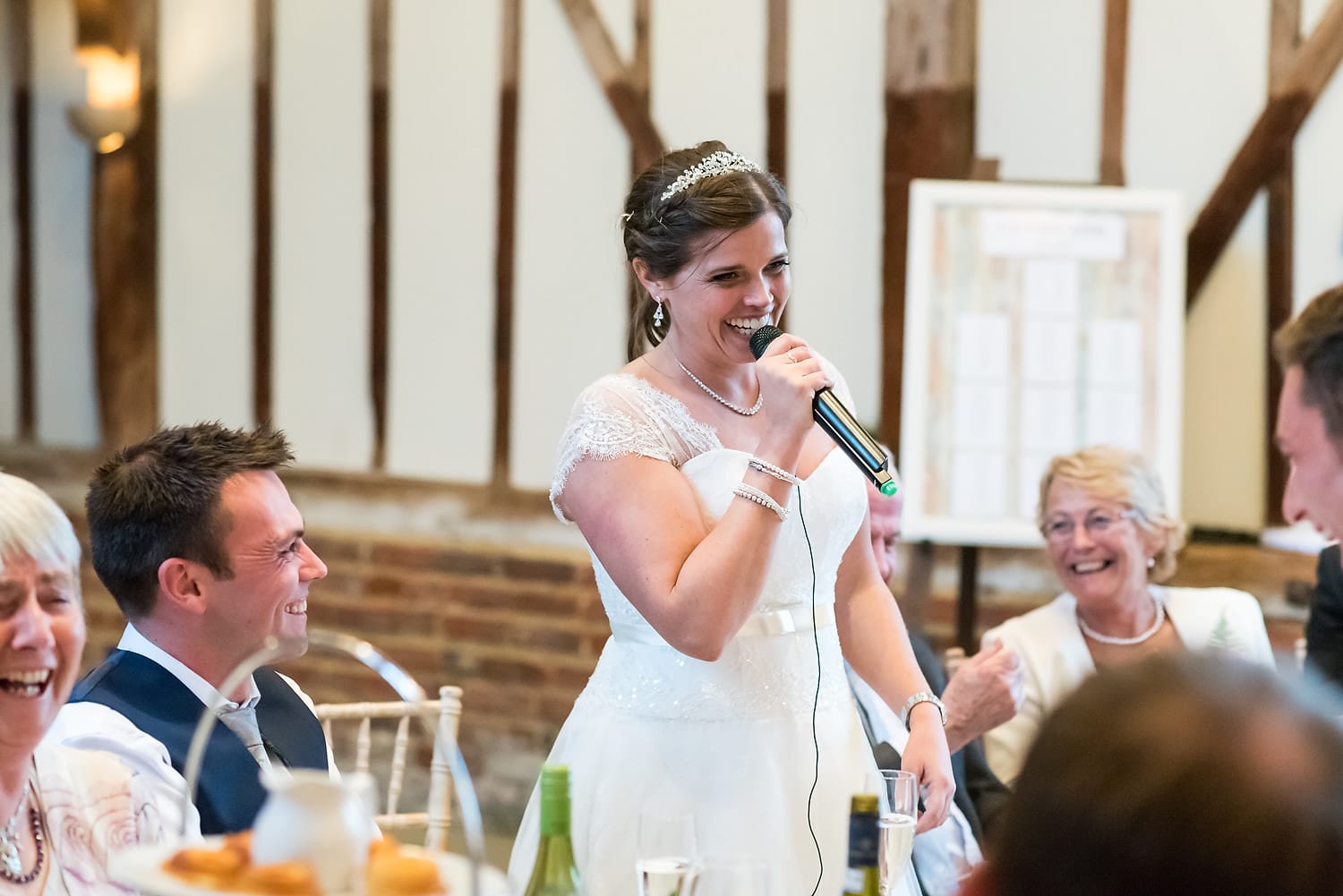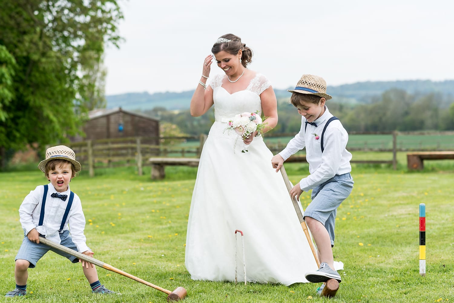 This was my first time photographing a Bonhams Barn wedding. This Hampshire wedding venue is situated in the village of Holybourne, which is just outside Alton. The day began with the wedding party getting ready at Watercress Lodges in Ropley. I loved this location next door to Ropley train station, and a place where you can even jump on the historical Watercress Line. When everyone was ready, they jumped onto the fun bus provided by Mervyns Coaches for the wedding ceremony at the Church of Holy Rood in Holybourne. Villages do not get more picturesque than this! After the ceremony, the bridal party jumped back onto the bus, and we headed to the barn for the wedding reception. The guests were wowed by the rolling hills and beautiful Hampshire landscape that surrounds this oak-framed barn.